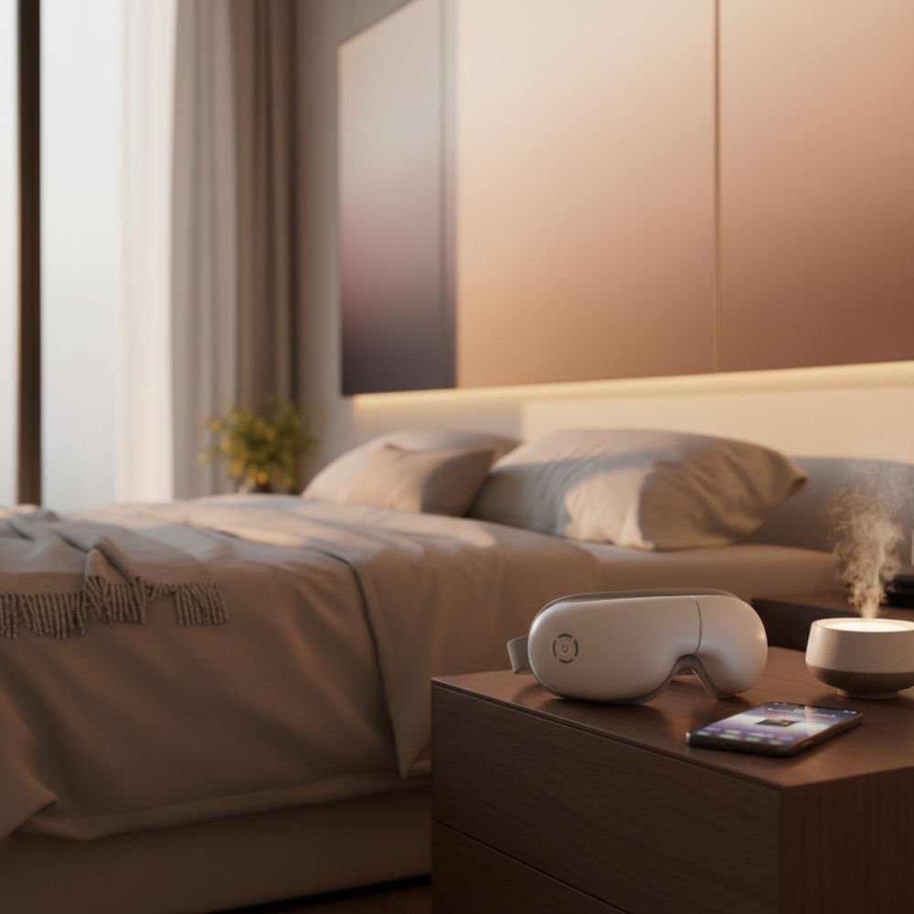 Opvarmet øjenmassageapparat – 5 tilstande til lindring af øjenbelastning, mørke rande og bedre søvn